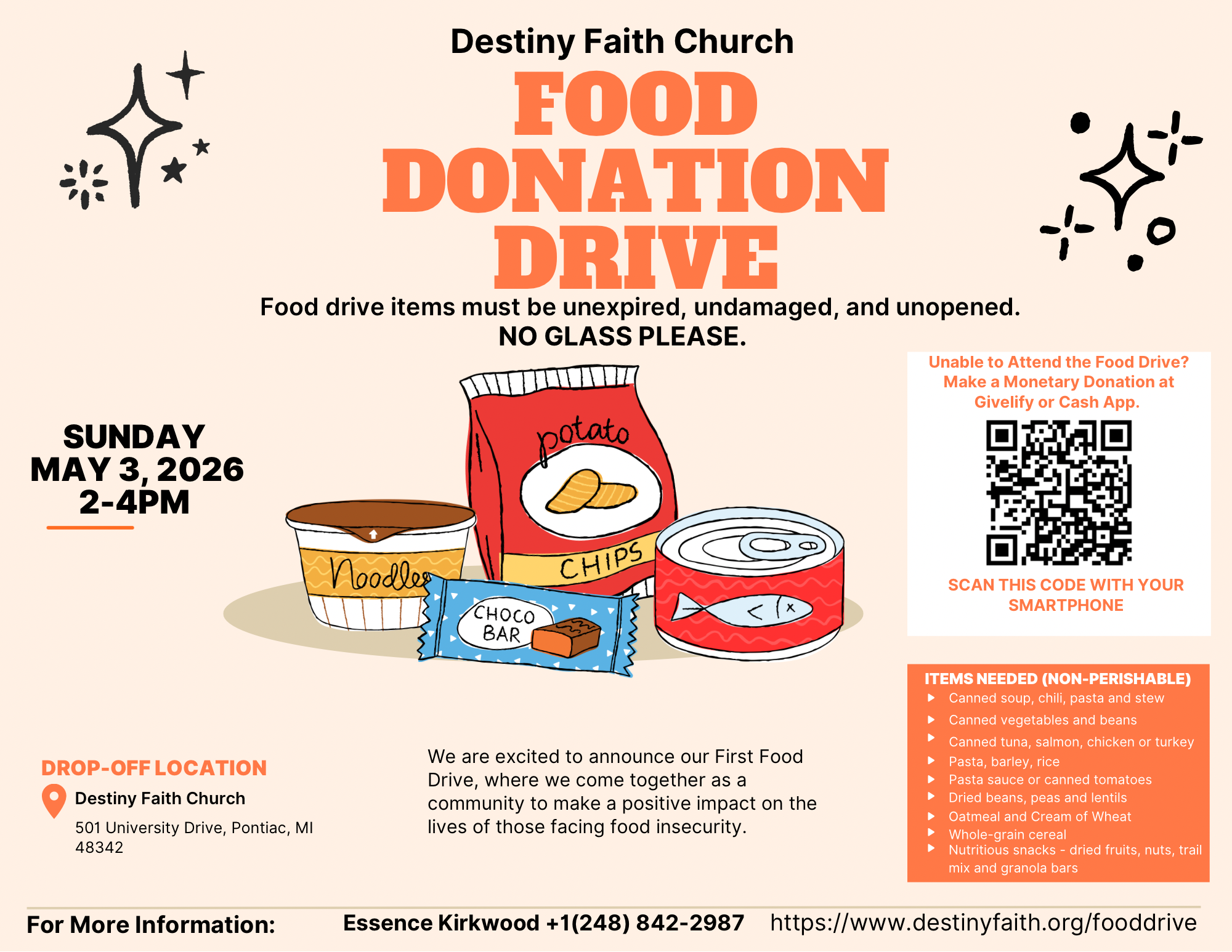 Destiny Faith Church is dedicated to serving our community, in and out of the church, from food giveaways to hosting Blood Drives, we ensure that your faith is fueled through our wide range of services available.